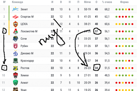 -Весной — 100% очков (9 из 9). До зимних каникул — 49% (28 из 57)