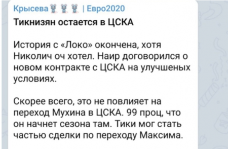 Инсайдеры - клоуны. Может быть интерес со стороны Локо был не к Тикнизяну вовсе, а к другому игроку коней? Давайте погадаем к какому... Учитывая что Плутник сказал, что приоритет - молодые россияне.