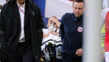 Полузащитника сборной Дании Кристиана Эриксена, потерявшего сознание на поле во время матча Дания — Финляндия, унесли с поля.