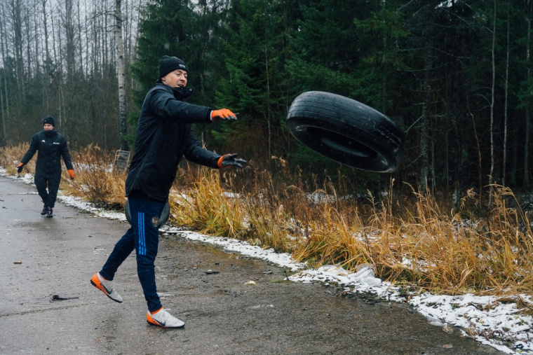 Участники пробега также убрали несанкционированную лесную свалку старых шин в Гатчинском районе Ленинградской области при поддержке экоквеста «Охота на колеса».
