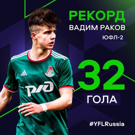 Нападающий «Локомотива» Вадим Раков оформил дубль в матче с ЦСКА и установил рекорд Лиги, забив за сезон 32 мяча. Поздравляем юных игроков нашей Академии! Браво, парни!