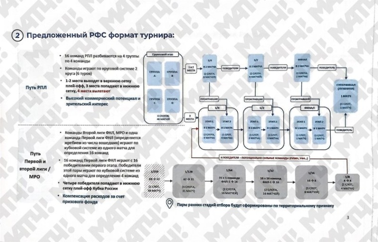 Команды Первой и Второй лиг в плей-офф будут пробиваться по другой схеме. Большая часть команд Первой лиги вступит в борьбу со стадии 1/32 финала. В нижнюю сетку плей-офф попадут четыре победителя 1/8 финала.