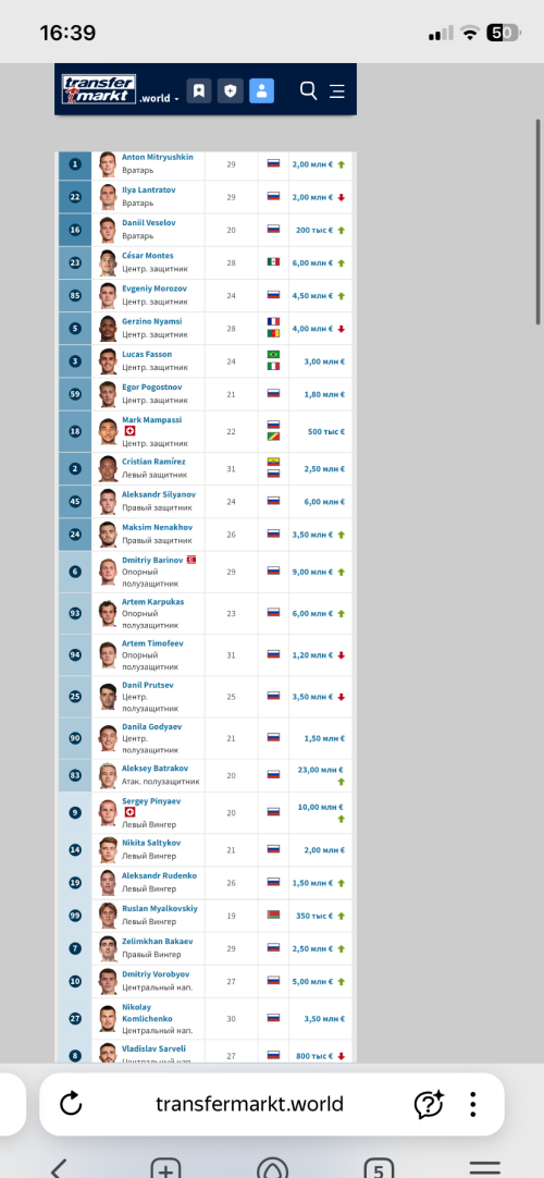 У нас сильно повысилась трансферная стоимость команды - почти 106 лямов евро, на 1 меньше, чем Динамо и на 10 меньше, чем Краснодар и почти на 13 больше ЦСКА