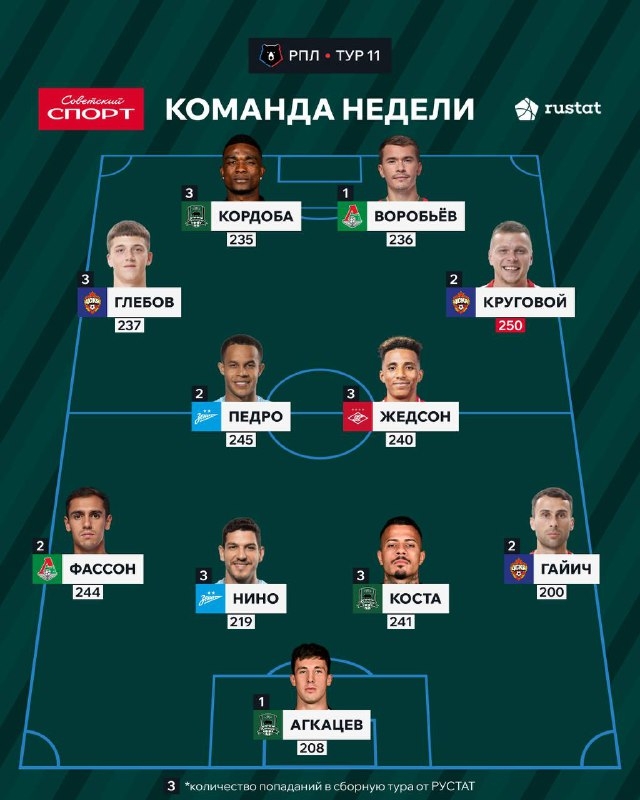 Дмитрий Воробьёв и Лукас Фассон — в команде недели по версии «Советского спорта» и РУСТАТ