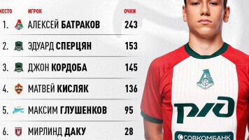 Так, лучшим игроком по этому показателю стал хавбек «Локомотива» Алексей Батраков (32 созданных момента за 1653 минуты). В тройку лучших вошли также Эдуард Сперцян из «Краснодара» и Максим Глушенков из «Зенита».