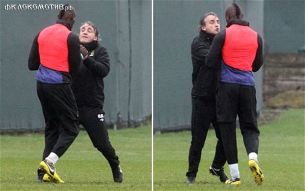 Наставник "Манчестер Сити" Роберто Манчини прокомментировал инцидент, который случился случившийся на вчерашней тренировке команды, когда Манчини едва не подрался с форвардом Марио Балотелли. "На тренировке Балотелли ударил своего товарище по команде. Я сказал ему, чтобы он покинул поле, он отказался. Я взял его за майку и попытался вытолкнуть с поля. Вот что произошло, но никакой драки между нами не было. Такое может произойти в любом клубе. Буду ли я из-за этого выставлять его на трансфер? Конечно нет, это ничего не меняет. Я дам Марио еще множество шансов, если пойму, что он способен измениться. Ему только 22 года, люди в этом возрасте совершают ошибки", — цитирует Манчини Sky Sports.