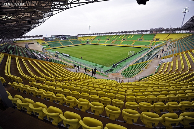 Комментарий: «Ахмат Арена» открыта всего три года назад, а уже успела принять в прошлом году финал Кубка России. Визитная карточка грозненской арены – качественный газон, выращенный в Тульской области.