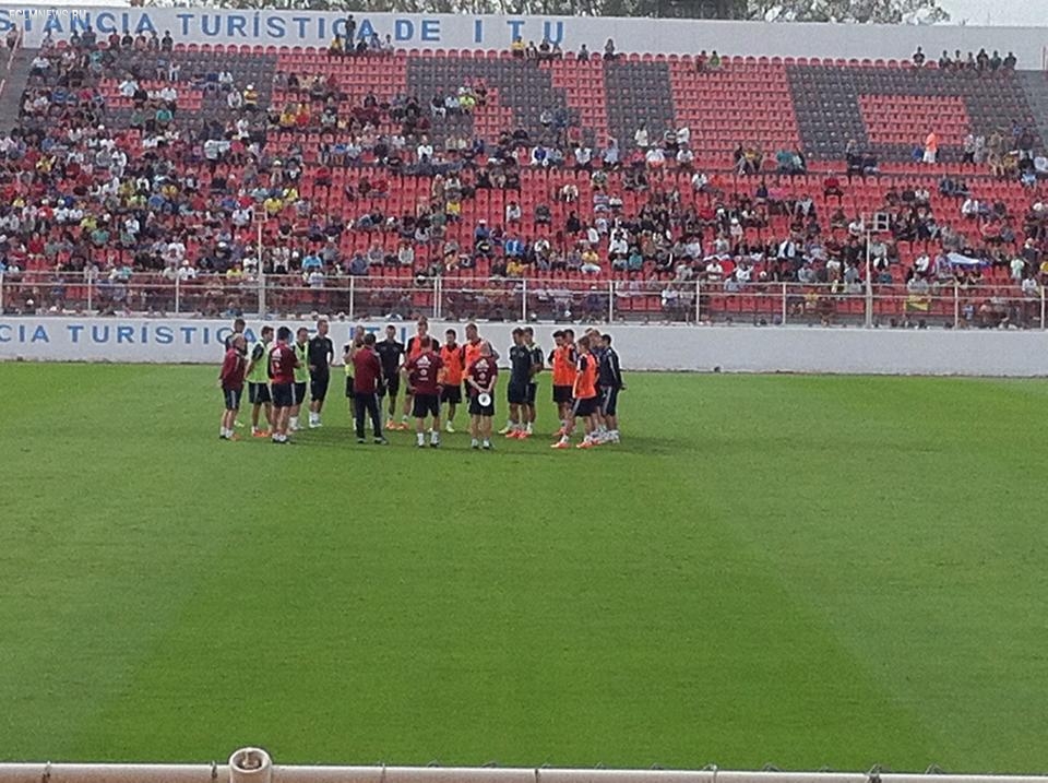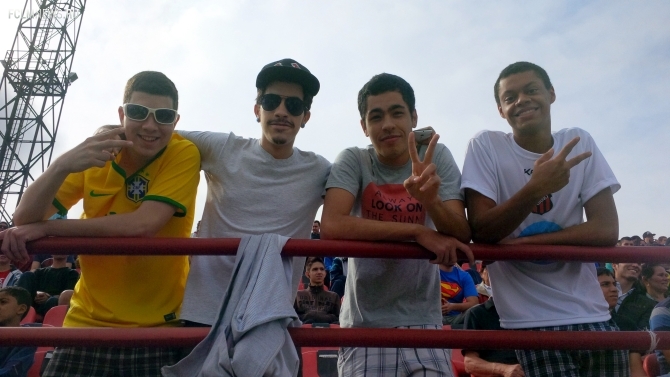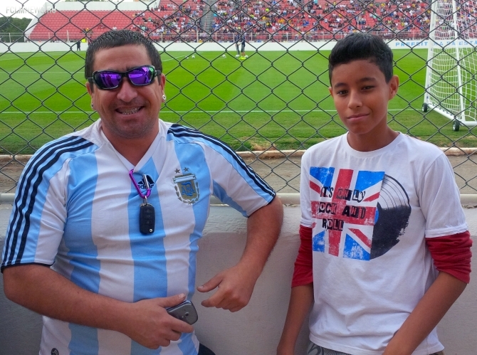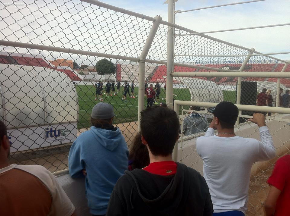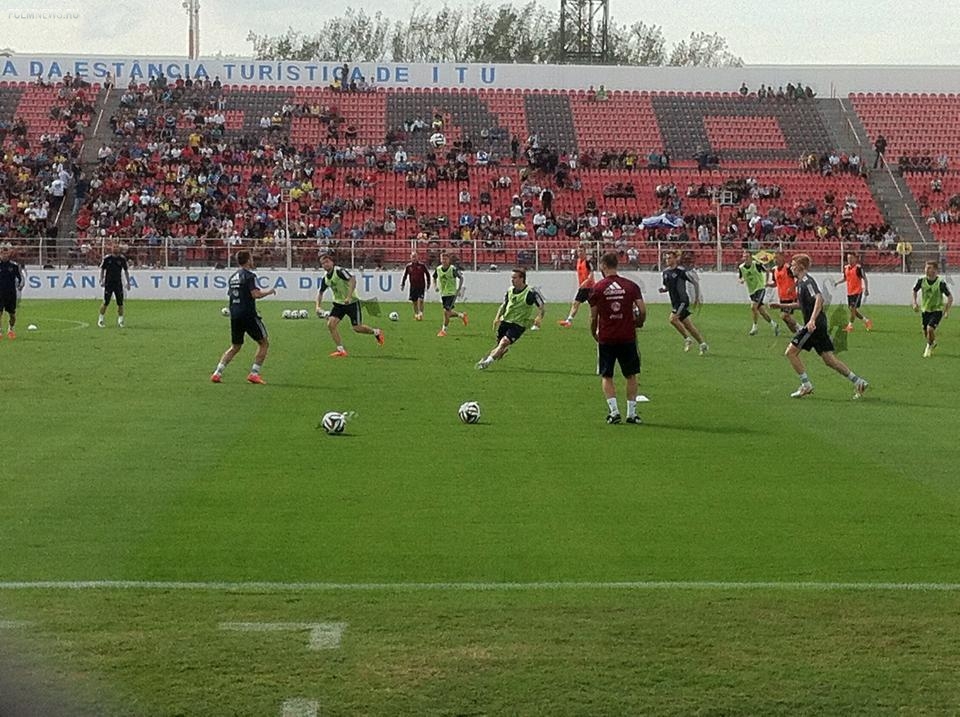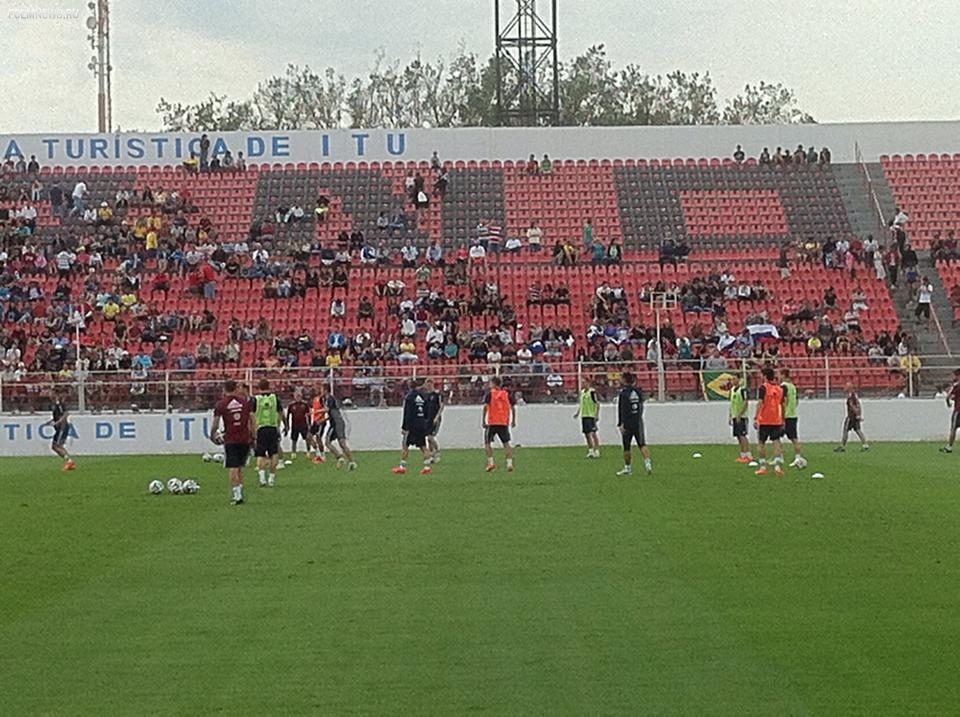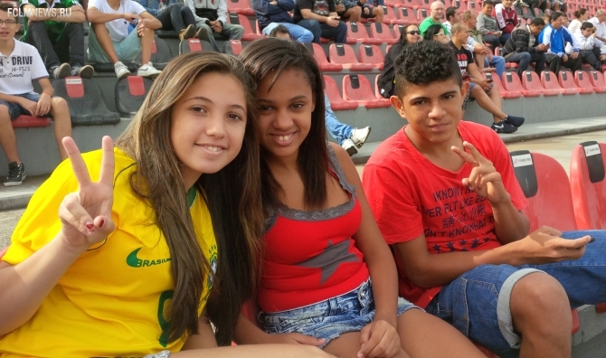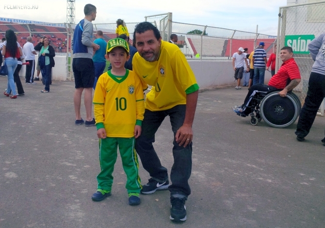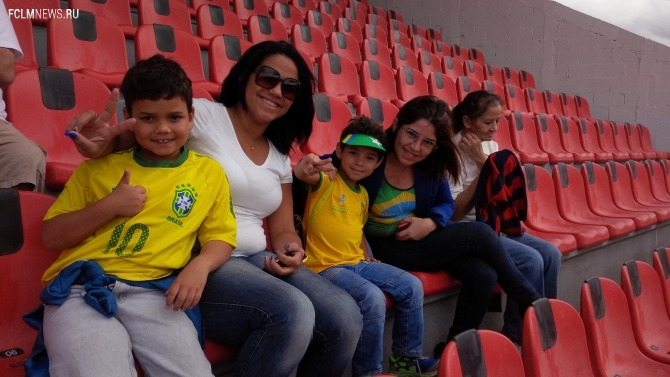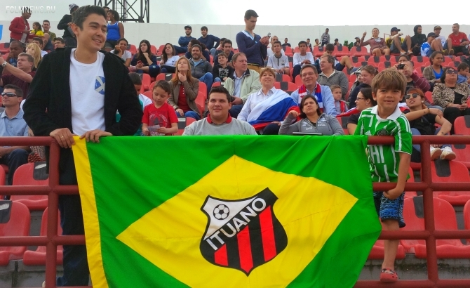 Накануне у стадиона «Новелли Жуниор» выстроилась очередь за бесплатными билетами на тренировку. А с утра во вторник - бойцы с автоматами, полицейские на мотоциклах и . Но такие меры безопасности, кажется, излишни. На стадион люди идут семьями, у многих малышей в руках бразильские и российские флаги. Чувствуется, для Иту, население которого чуть больше 150 тысяч человек, это событие. Какие тут развлечения? Ну, в центре города погулять - там где огромные таксофон и светофор. Ну, мясо на выходных с пожарить. А тут - сборная из России. Из другого мира.