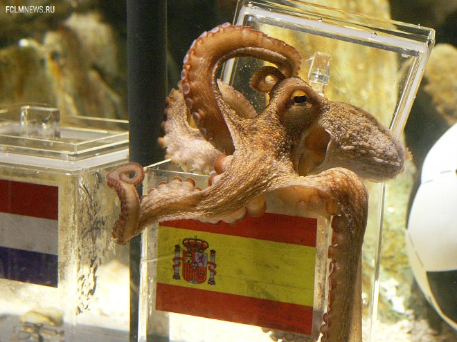 Немецкий профессор предсказаний, добрый осьминог Пауль прославился на весь мир во время Евро-2008. Восьминогий оракул специализировался на предсказаниях матчей родной сборной Германии. В преддверии матчей в аквариум к Паулю ставили две прозрачные кормушки с флагами соперничающих сборных, после чего осьминог заползал в понравившуюся, таким образом делая свой выбор.
