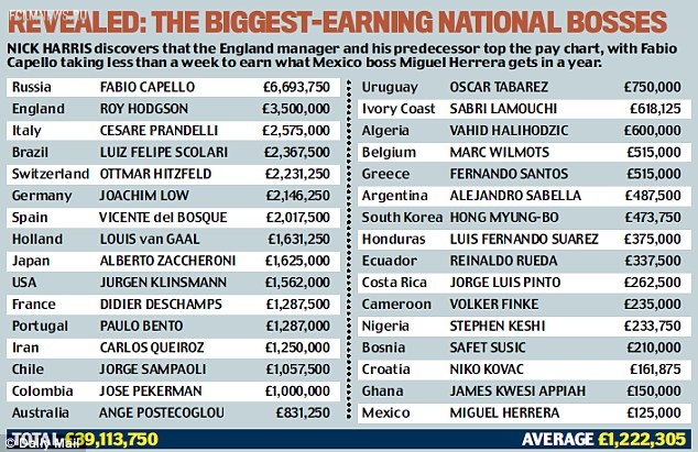 Рой Ходжсон из сборной Англии (3,5 млн фунтов в год), третье -