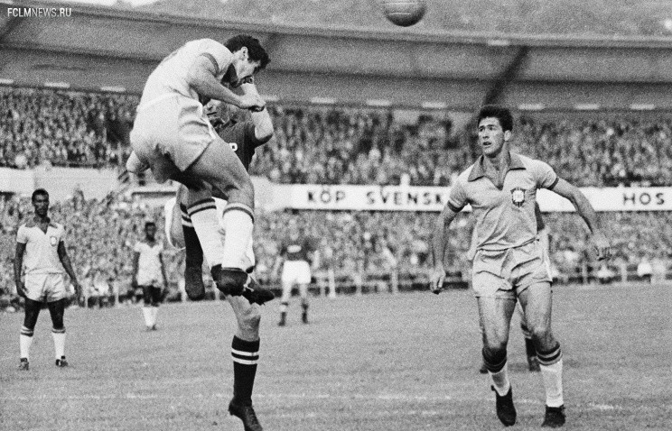 Футболисты Орландо (слева), Беллини (справа) и Валентин Иванов (позади Орландо) во время матча между сборными Бразилии и Советского Союза на ЧМ-1958 в Швеции (2:0)Чемпионат мира-1958 в Швеции