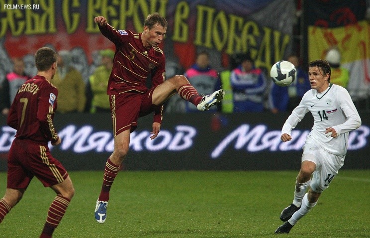 Игорь Денисов, Василий Березуцкий и Златко Дедич (слева направо) во время стыкового матча на ЧМ-2010 между сборными России и Словении (0:1)Чемпионат мира-2006 в Германии и Чемпионат мира-2010 в ЮАР