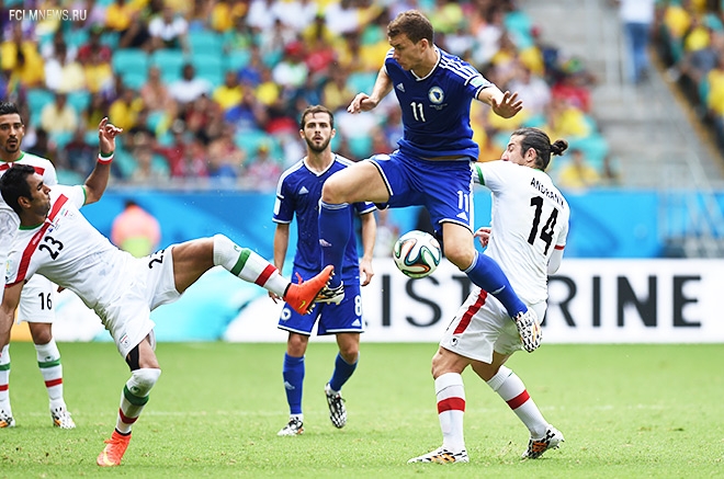 Босния и Герцеговина выиграла у Ирана в матче третьего тура группового турнира чемпионата мира в Бразилии. Игра состоялась 25 июня в Салвадоре на стадионе «Арена Фонте-Нова — Отавиу Мангабэйра» и завершилась со счётом 3:1 в пользу боснийских футболистов.