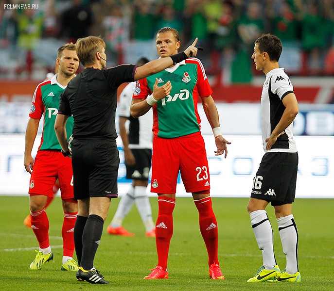 42-я минута – Фатуллаев в своей штрафной площади неудачно играет рукой, за что справедливо получает предупреждение и пенальти в свои ворота. При счете 4:2 пятый гол на 48-й минуте забивает Кокорин, замкнув передачу с фланга. Только несколько повторов этого момента показали, что Кокорин кроме удара головой подправил мяч рукой, о чем сигнализировал Плетикоса. Вилкову было крайне трудно разобраться в этом моменте, и он ошибочно засчитал взятие ворот.