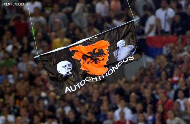 Великая Албания — националистическая идеология, в основе которой лежит идея о воссоединении всех территорий, где преобладает албанское население, и на появление флага среагировали и футболисты, и зрители.