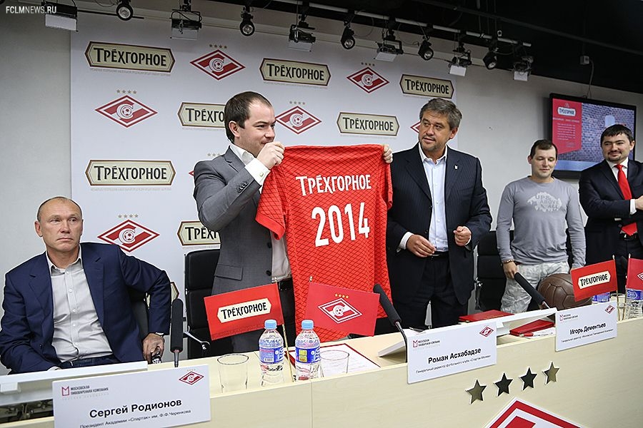 "Спартак" и пиво стали ближе: на неделе был подписан долгосрочный партнерский контракт между футбольным клубом "Спартак-Москва" и Московской пивоваренной компанией (марка "Трехгорное"). Контракт рассчитан на несколько лет и с учетом всех рекламных опций сумма соглашения составляет около 150 миллионов рублей… Теперь о самом интересном. О напитках на стадионе. Во время матчей "Спартака" на домашних матчах будет продаваться пиво… "Трехгорное безалкогольное". Точка.