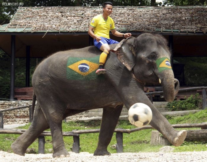 В Таиланде пошли дальше и приспособили для игры в футбол слонов. Правда, животным не объяснили, что хоботы использовать нельзя.