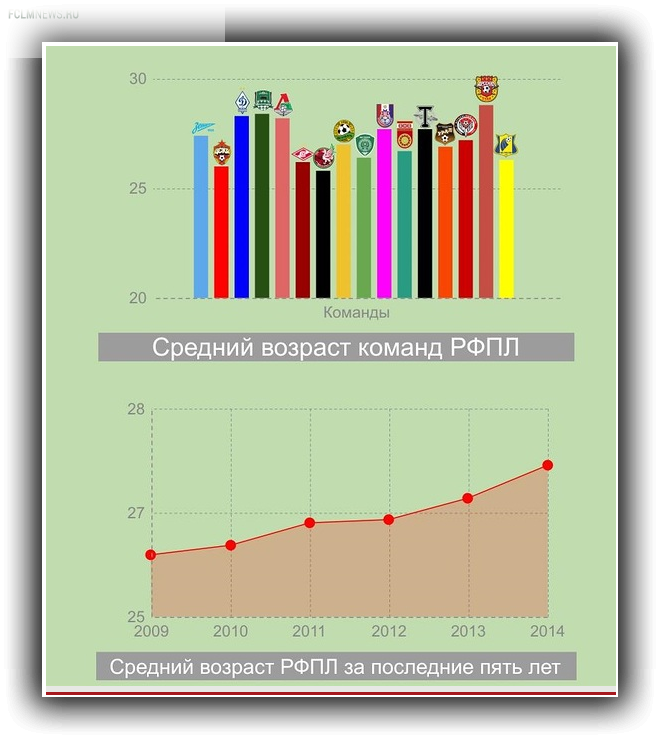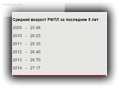 Кому-то не дают практику, кто-то не проходит в состав по объективным причинам, но факт остается фактом. Если в 2009 году средний возраст РФПЛ составлял – 25,88 лет, то в уходящем 2014 – 27,17. И процесс не собирается останавливаться.