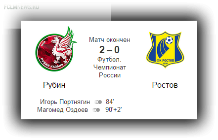 Таким образом, «Рубин» набрал 36 очков и поднялся на четвертое место, а «Ростов» с 14-ю очками остался на 16-й позиции.
