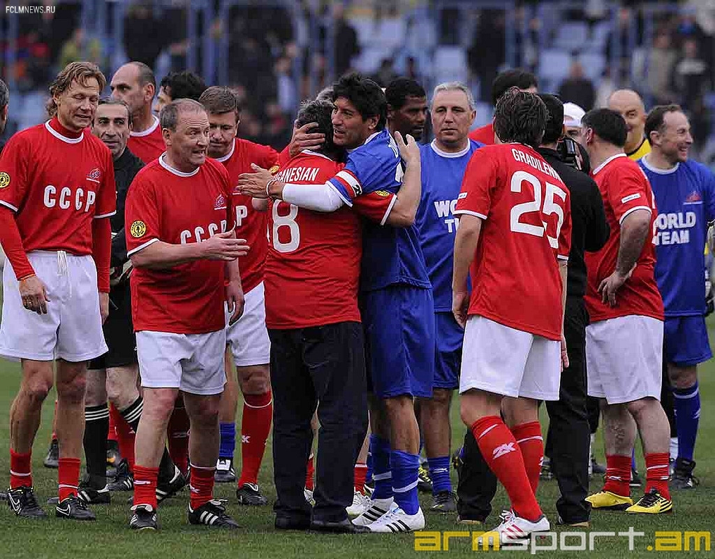 Сегодня, 28 марта, на “Республиканском” стадионе в Ереване состоялся матч между ветеранами сборной СССР и Сборной Мира, приуроченный к 60-летнему юбилею одного из лучших игроков в истории Армении и всего советского футбола Хорена Оганесяна. Встреча завершилась вничью со счетом 3:3,