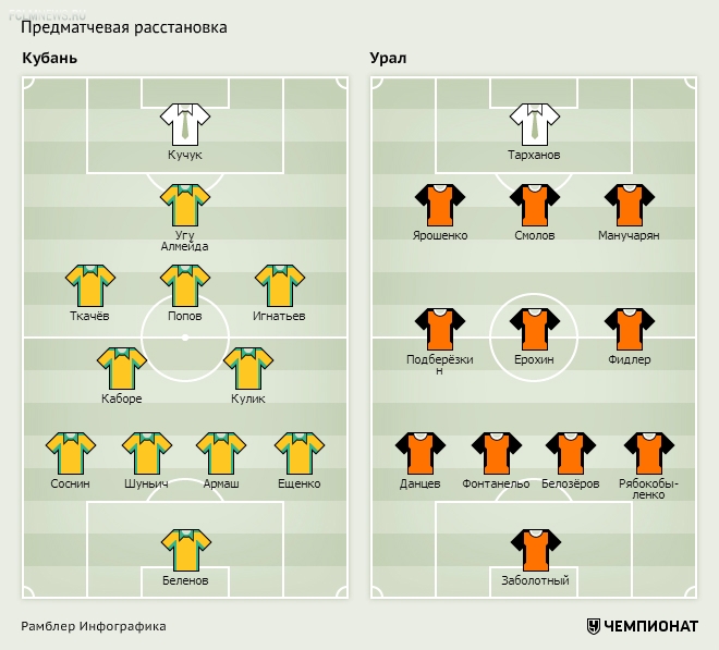 Матч с «Ростовом» стал для «Урала» настоящей катастрофой. Команда утратила безупречную репутацию, впервые проиграв в манеже, да ещё и конкуренту – это раз. Емельянов и Асеведо получили от арбитра карточки, которые не позволят им сыграть в Краснодаре – это да. И, наконец, один из лидеров команды Лунгу получил тяжёлую травму – это три. Чудовищные последствия для одной игры. После матча по раздевалке только что стулья не летали, зато голос президента клуба Григория Иванова был слышен даже на улице. «Кубань» также вернулась из Москвы в дурном настроении: Леонид Кучук убеждён, что его команды попросту отобрали победу, не засчитав гол Уго Алмейды. Однако даже при этом гости были обязаны побеждать – Артём Ребров словно заколдовал штанги ворот «Открытие Арены». Так что «Кубань» — «Урал» — это матч несогласных в какой-то степени. Мотивация будет запредельная и у тех, и у других.
