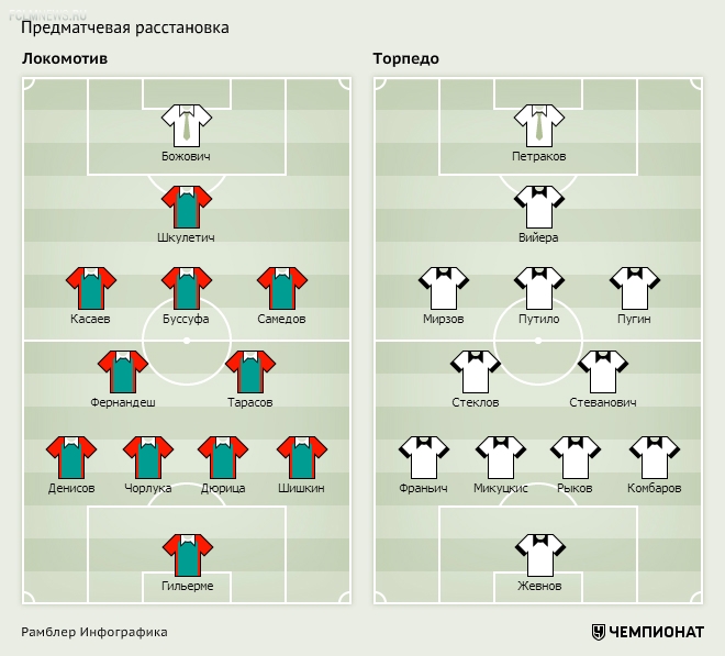 «Локо» придётся обойтись без дисквалифицированных Шешукова и Майкона, что ставит Миодрага Божовича в сложное положение. Тем более что соперник набрал очень хороший ход – торпедовцы сумели отобрать очки у «Зенита», затем на равных боролись со «Спартаком» и наконец одержали важнейшую победу в Туле над «Арсеналом». Едва ли «Локомотив» может считаться таким безусловным фаворитом матча, как считают букмекеры.