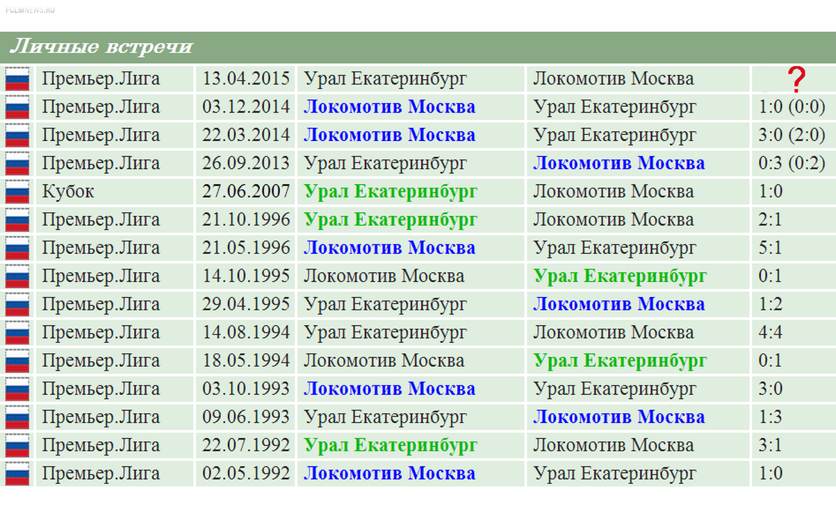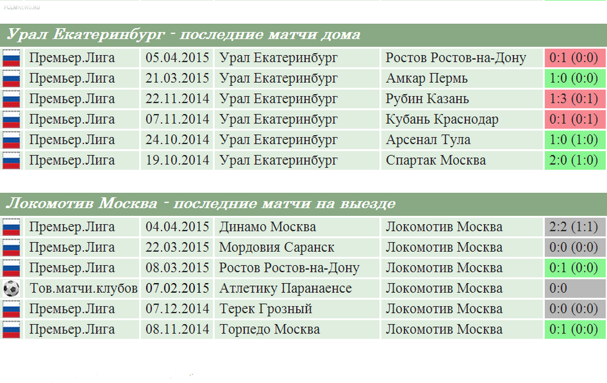 Cтатистика матчей на поле Урал Екатеринбург