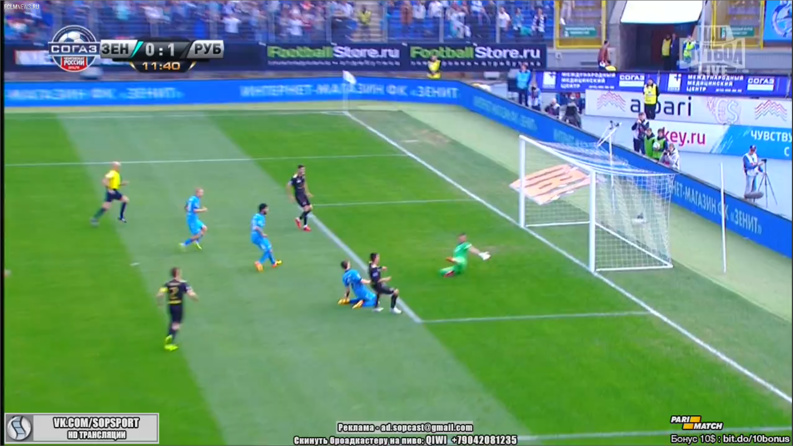 «Рубин» забил быстрый гол. На четвертой минуте проникающая передача Благоя Георгиева нашла в штрафной площади подключившегося защитника Эльмира Набиуллина, который забил свой первый гол на высшем уровне.