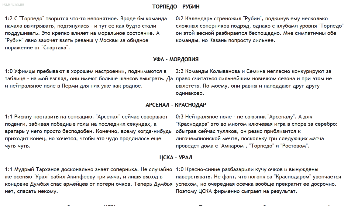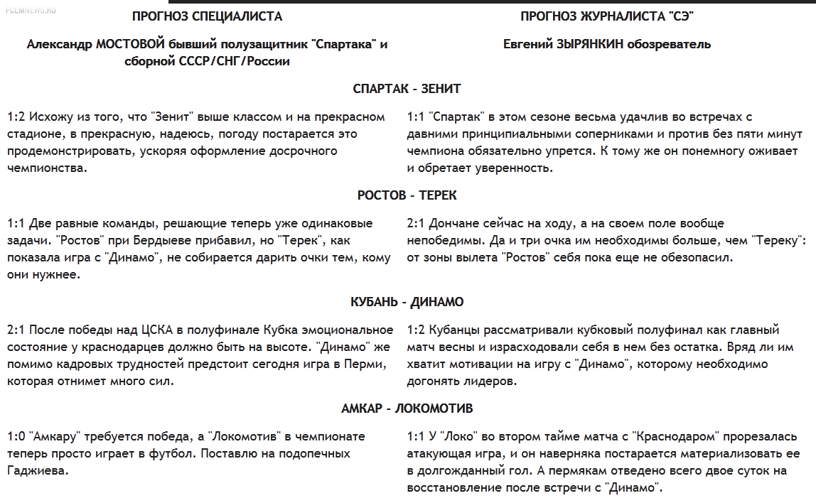 4 sport-express.ru 1 мая 2015, пятница, 08:20 Конкурс прогнозистов. 26-й тур СОГАЗ - ЧЕМПИОНАТ РОССИИ. ПРЕМЬЕР-ЛИГА. 26-й тур Дед Николай Новости футбола 32