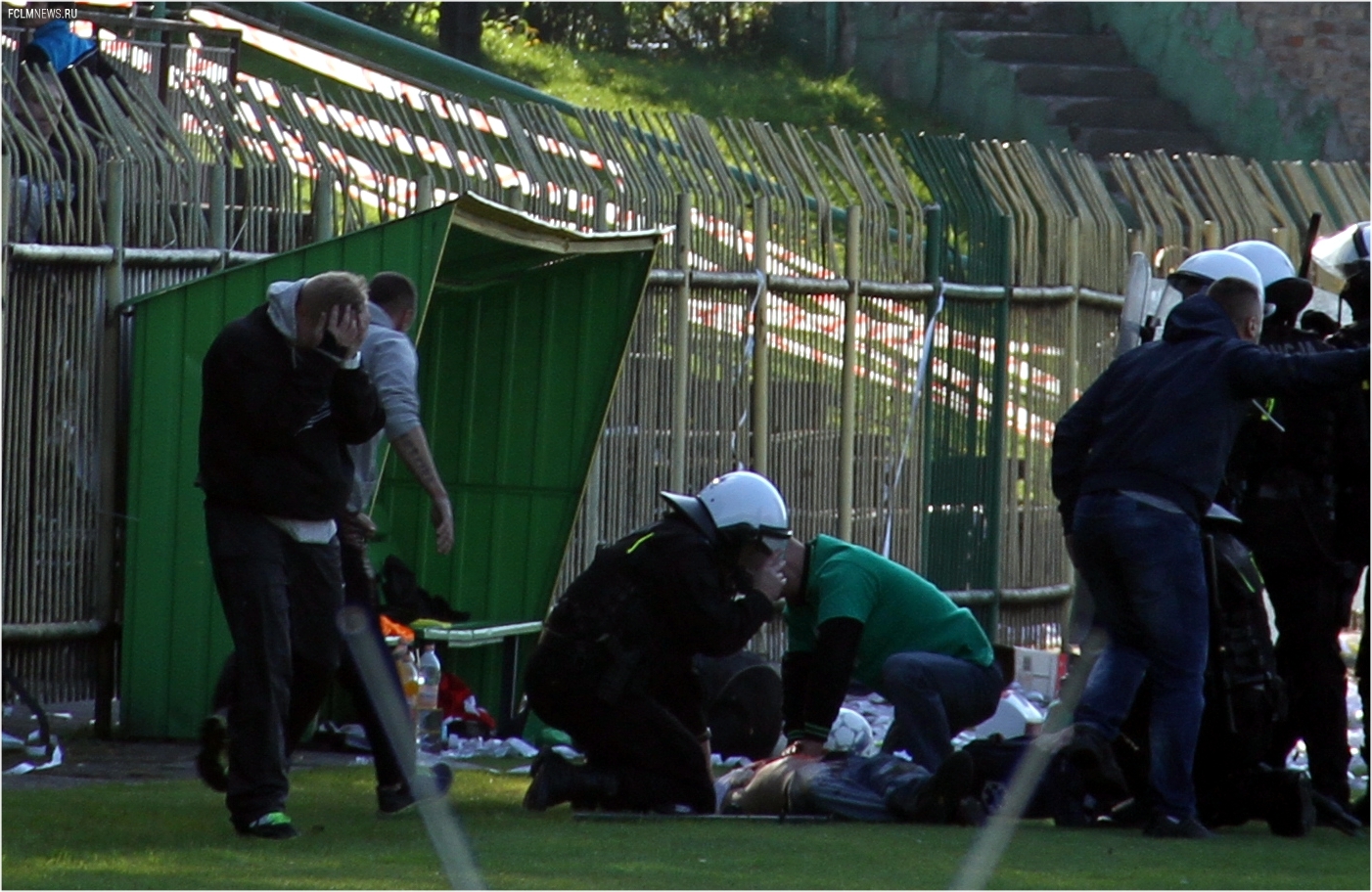Как сообщает местный информационный портал Iknurow, пострадавшему была оказана первая помощь на стадионе, позже 27-летний болельщик был доставлен в больницу, однако его жизнь спасти не удалось.