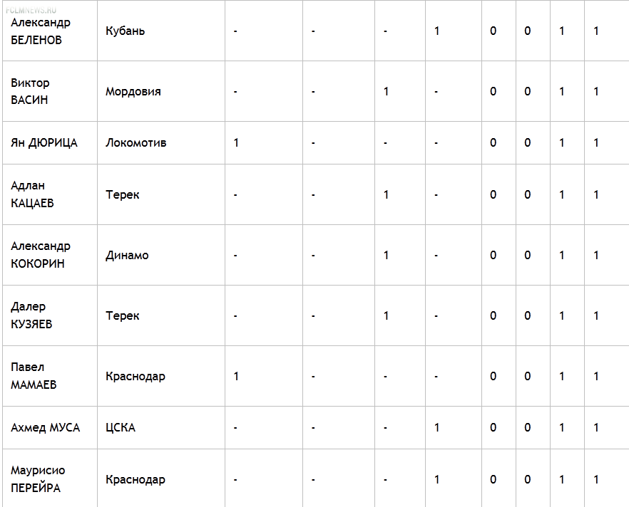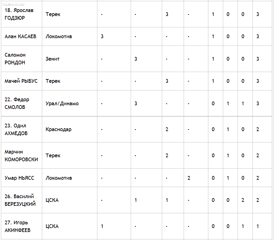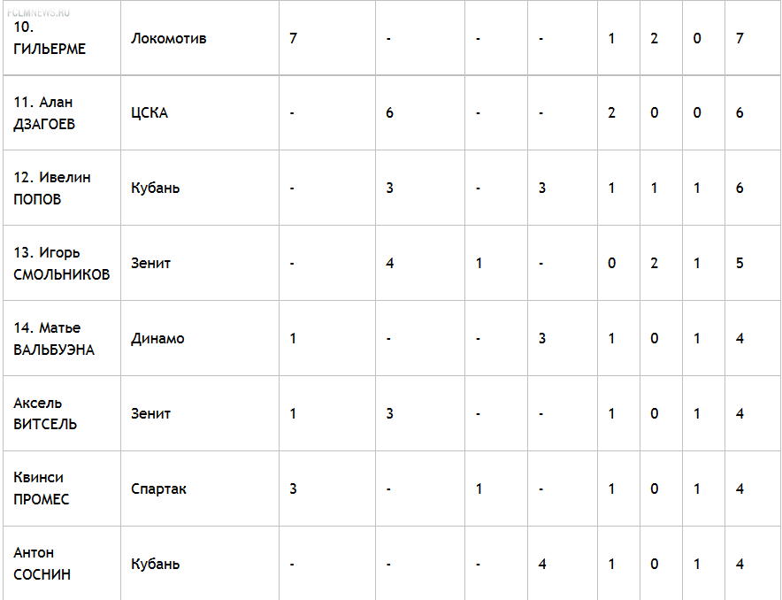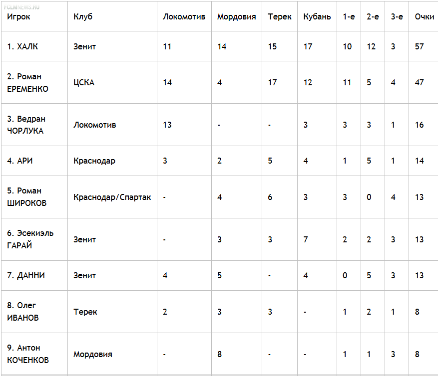 Промежуточные итоги голосования на звание лучшего игрока чемпионата России в клубах, занявших 7-10-е места