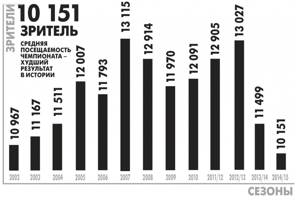 Самая низкая посещаемость в истории чемпионатов России, провал «Локомотива» в чемпионате и победа в Кубке: еженедельник «Футбол» выписал главные цифры Премьер-лиги, которые лучше всего характеризуют то, чем запомнится ЧР 2014/15.