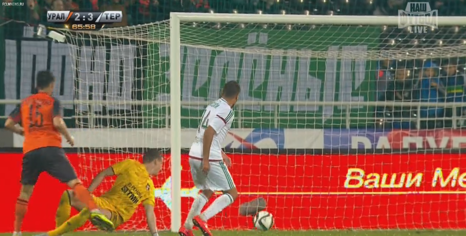 На 22-й минует Мацея Рыбус из «Терека» сократил отрыв в счете – 2:1. В концовке первого тайма нападающий гостей Заур Садаев сравнял счет после паса Рыбуса.
