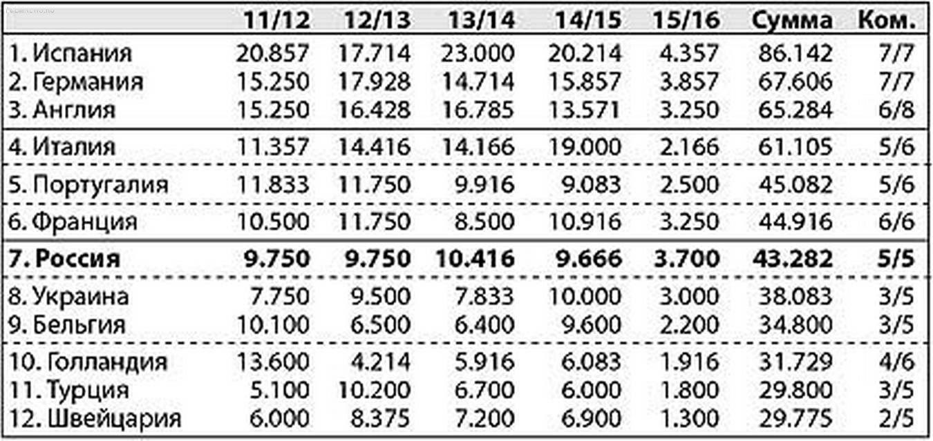 При удаче же "железнодорожников" мы вполне сможем замахнуться даже на лучший рейтинговый показатель России на этом рубеже за все предыдущие сезоны - 4.250, достигнутый два года назад. Для этого надо, чтобы сегодня «Локомотив», «Рубин» и «Краснодар» добыли еще три очка на всю компанию. Согласитесь, несмотря на выездной характер матчей и силу соперников, вполне достижимый результат.