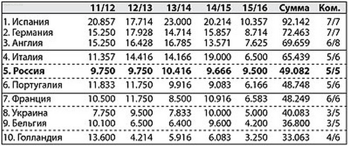 Вслед за Францией удалось обойти и Португалию, впервые на российском этапе истории войдя в пятерку грандов