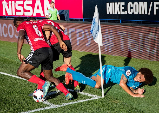 Витсель вылетает за пределы поля. Возможно, это был последний раз, когда бельгиец потерял мяч в Санкт-Петербурге. Похоже, теперь Витсель вылетает в Турин.