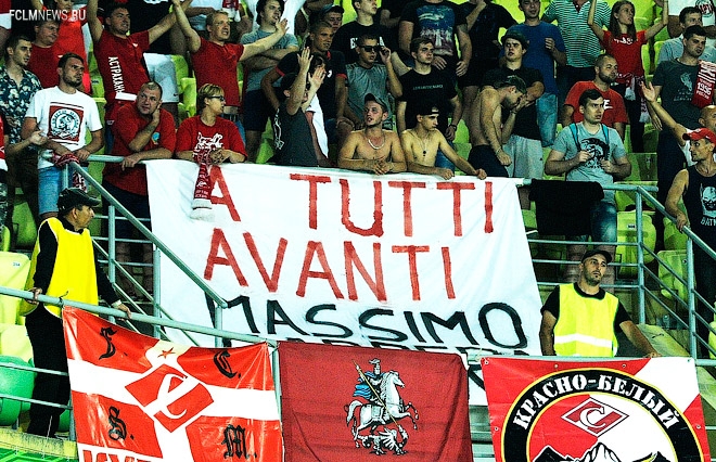 Болельщики «Спартака» переделали скандирование фанатов «Лацио» и вместо «Все вперёд, Бенито Муссолини», написали «Все вперёд, Массимо Каррера».