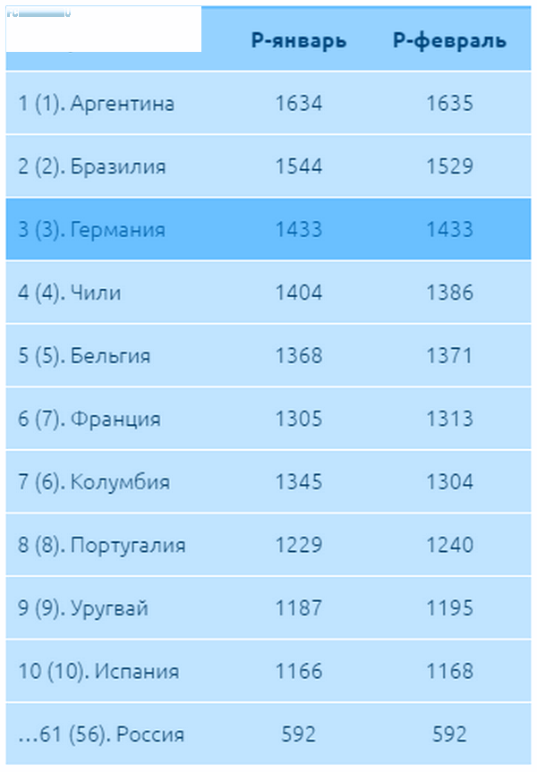 От проведения декабрьского сбора Станислав Черчесов отказался, но некоторые команды решили сыграть. В результате с теми же баллами наша сборная отступила в рейтинге еще на одну ступень, обновив печальное достижение. Многие ожидали, что так же будет и в феврале: наши показатели, оставшись неизменными, позволят сохранить статус-кво. И уж точно никто не ждал очередного провала. Но если не везет, то не везет во всем. С теми же 592 очками наша сборная за период зимнего бездействия вылетела даже за пределы шестого десятка, оказавшись на 61-й ступени рейтинга ФИФА. Просто катастрофические показатели для сборной не так давно уверенно державшейся в первом десятке.