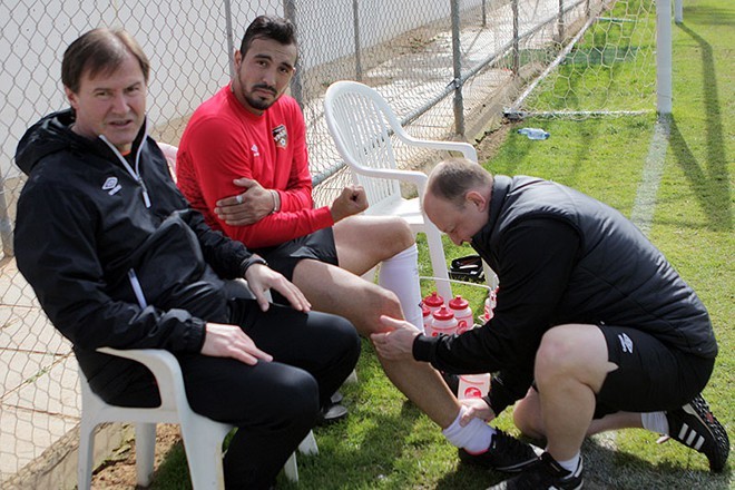 «На сборах 80% процентов команды играет на мозолях. Футболисты приходят из отпусков, кожа у них на ногах стала мягкой, плюс они надели новые бутсы. В итоге кто-то мог натереть жуткий мозоль, а у кого-то дискомфорт между пальцев. Мы боремся с мозолями при помощи искусственной кожи – квадратных или круглых силиконовых подушечек. Кожа нарезается под нужную нам форму и клеится. Спустя какое-то время кожа на ногах игроков пройдёт стадию огрубения, и уже не будет так натираться».