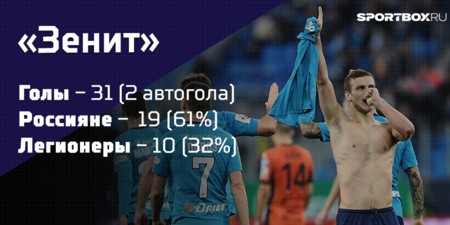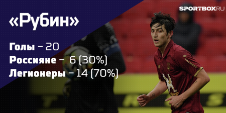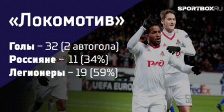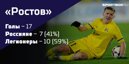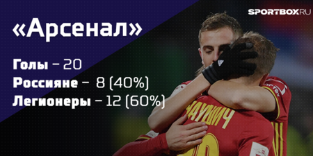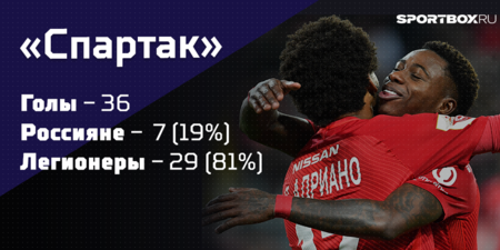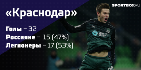 Всего за 20 туров было забито 367 голов. Россияне отличились 159 раз, легионеры – 198. Только в четырех клубах РФПЛ футболисты с паспортом РФ забивают больше иностранцев, а еще в одном - столько же.