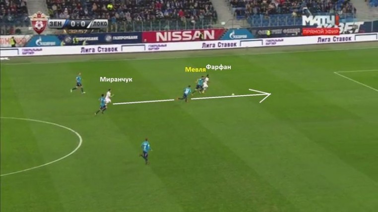 Главный козырь Фарфана - скорость. Когда рядом есть такие распасовщики как Фернандеш (глубже) и Миранчук (рядом), это качество очень ценно. А если еще и тренер умеет бить им по слабостям соперника! В матче с «Зенитом» (3:0) Фарфан неизменно открывался в зоне правого центрального защитника - сначала им был Мевля, позже Иванович. Они медленнее левого центрального защитика Мамманы. В итоге Фарфан забил два и ассистировал партнеру.