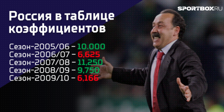 Например, в 2009 году ни одна из наших команд не дошла до группового этапа. Кошмар. Три клуба вылетели в последнем раунде квалификации: «Динамо» от софийского ЦСКА, «Амкар» от будущего финалиста «Фулхэма», «Зенит» от португальского «Насьонала». В таблице коэффициентов в том сезоне всего – 6,166.