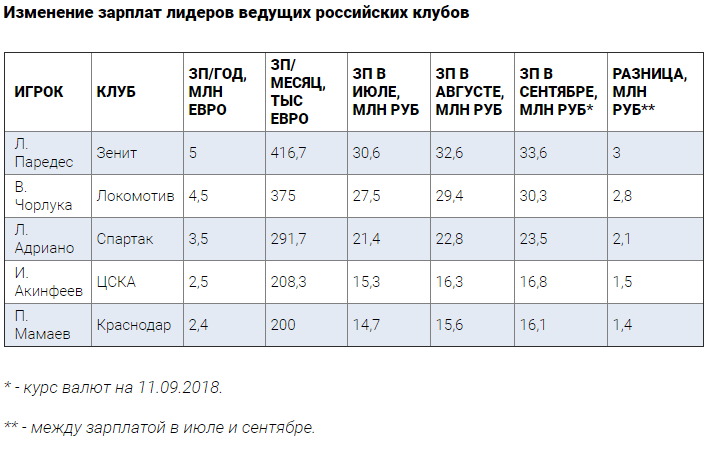 Это привело к заметному увеличению нагрузки на бюджеты футбольных клубов, ведь значительную часть различных оплат (помимо покупки футболистов сюда можно включить международные перелеты, различные учебно-тренировочные сборы и прочее) они осуществляют в иностранной валюте – долларах или евро. Курс евро на 11 сентября составляет 80,7 руб, а значит ситуация только ухудшилась.