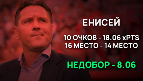 Кроме шуток, если бы Дмитрия Аленичева пару недель назад уволили, то мы бы рано или поздно действительно увидели в действии его багаж: "Енисей" по статистике не наиграл на последнее место и должен с запасом бороться за стыки. Тем не менее, невезение вылетающей команды - дело привычное и логичное, везучие туда не попадают. Задача клуба и тренерского штаба не впадать в истерику и не звать Вадима Скрипченко - задача понять, почему "Енисей" забивает меньше, чем создает (недобор - 5 голов) и пропускает больше, чем мог бы (перебор 7 голов).