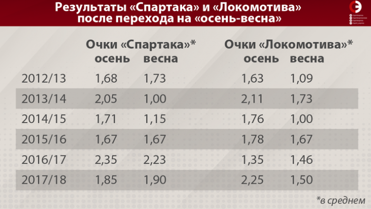 Результаты "Спартака" и "Локомотива" после перехода на "осень-весна"
