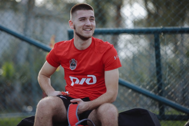 У раннего начала занятий есть и свои недостатки – роса ещё не успела высохнуть под солнцем. «Может утром будем игровой делать? Поляна полита!» – шутит Тимофей Маргасов, отправляя скользящий мяч в сторону ворот. Кстати, Тимофей отлично влился в коллектив. Имея немалый опыт выступления в РПЛ, Маргас, как называют его в команде, на своём примере показывает нашим молодым ребятам, как нужно работать, и, кажется, сам получает удовольствие, вспоминая себя в их возрасте.