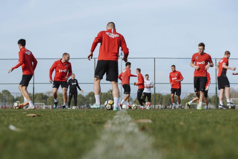 Подъем у красно-чёрных ранний – уже в девять утра команда начинает работать на футбольном поле. Другие команды приезжают на тренировочную базу значительно позже. По соседству с «Казанкой» работают словенцы, румыны и… «молодежка» ЦСКА. Последние, к слову, хоть и тепло поприветствовали нашу команду, шутили: теперь все наши наработки подсмотрите. Не волнуйтесь, армейцы, у нас своих достаточно, – с улыбкой отвечал наш штаб.