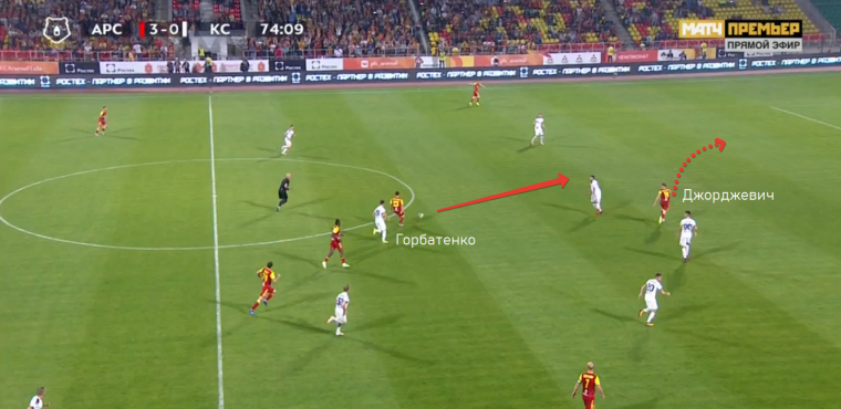 Джорджевич стабильно забивает меньше, чем вытекает по ожидаемым голам, но отлично находит моменты, когда нужно ускориться за спины защитникам. Контратакующий стиль Олега Кононова отлично подошёл Джорджевичу – Лука помогал не только в завершении контратак, но и в их развитии, забегая во фланги, чаще в правый, и создавая пространство в штрафной для рывка дальнего вингера. Также Джорджевич был очень опасен при подачах и стандартах: он – лидер сезона РПЛ по количеству ударов головой в створ (9), а один из редких голов забил пяткой после кросса со штрафного. Обидно, что Игорь Черевченко не так доверяет Джорджевичу. Он видит на острие атаки Кангва – но африканец полезнее, как вингер.