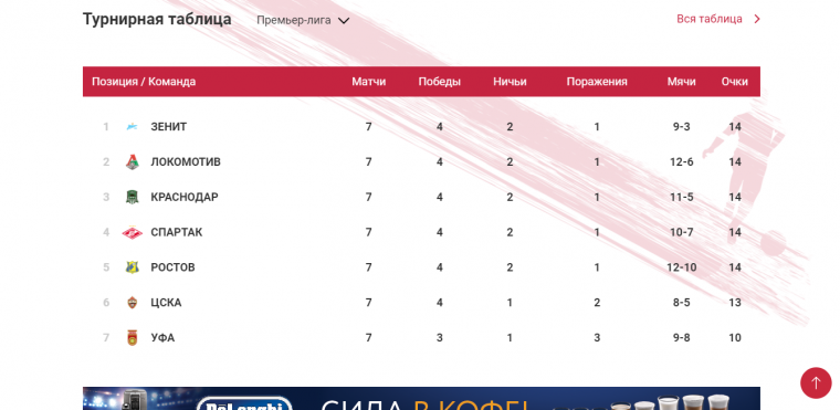 Тот случай, когда сайт РПЛ все сделал четко.