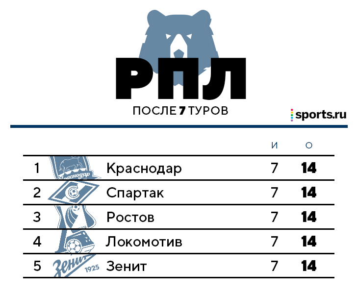 Кто-то скопировал таблицу с сайта РПЛ (скрины – ниже): там «быки» идут первыми, «Спартак» – вторым, затем «Ростов», «Локо» и «Зенит».